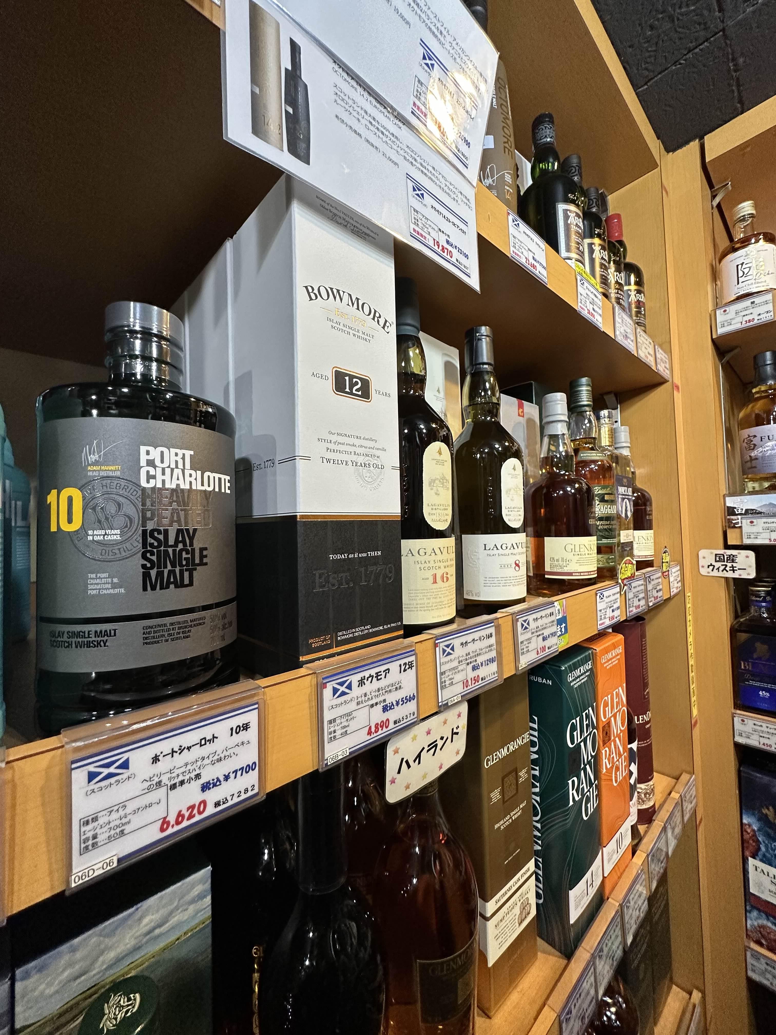 우선 매장에 들어가자마자 드는 생각은 '종류가 생각보다 많이 적은데?'였다.. 위스키보다는 럼, 리큐르, 테킬라 등의 제품들이 중앙 선반을 채우고 있었고 위스키, 버번은 매장 안쪽 벽에 위치하고 있었다. 그런데 그 가짓수가 Ploom Station보다는 너무 적어서 여기서 살게 있나?라는 생각이 들긴 했다. 하지만 조금만 둘러보면 훨씬 다양한 위스키들이 있었고 특이한 위스키들이 있었다. 게다가 전반적인 가격이 다른 곳보다 거의 1,000엔 정도 싸기도 하고 면세가 가능하기 때문에 이곳에서 사는 것을 추천한다. 또한 다른 곳보다는 여기가 카테고리에 맞춰 정말 잘 정리되어 있는 분위기이기 때문에 훨씬 보기가 수월했다.