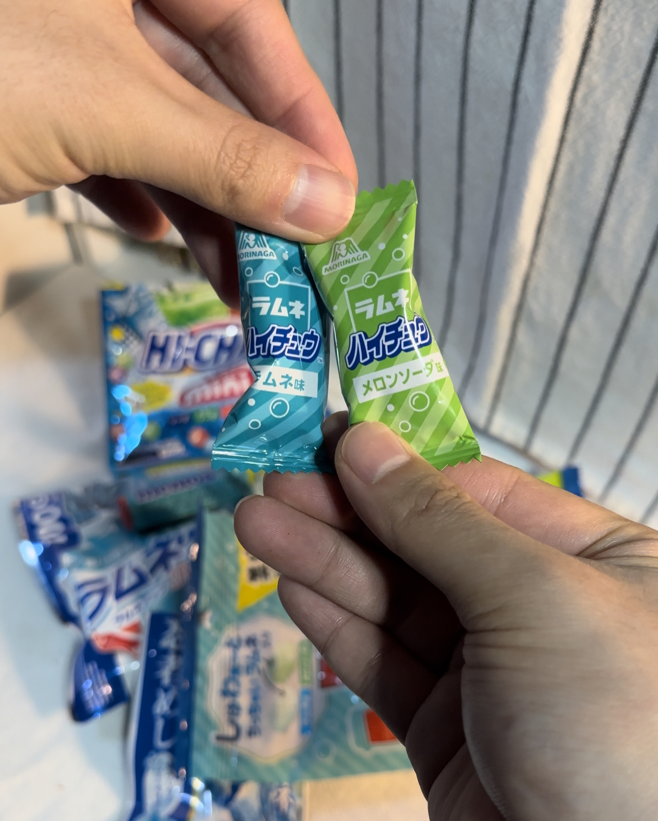 라무네 맛 캔디라고 한다면 모리가나의 라무네 알약 캔디를 터 올릴 가능성이 크다. 모리가나의 경우 하이츄 라인도 있기 때문에 여러 가지 형태가 있는데 라무네 캔디 + 하이츄를 합쳐 놓은 것이 라무네/메론소다 맛 하이츄이다. 이상하게 원래 하이츄는 영어로 Hi-Chew라고 적혀 있는 경우가 많은데 이 제품에는 하이츄가 일본어로 밖에 적혀있지 않았다.