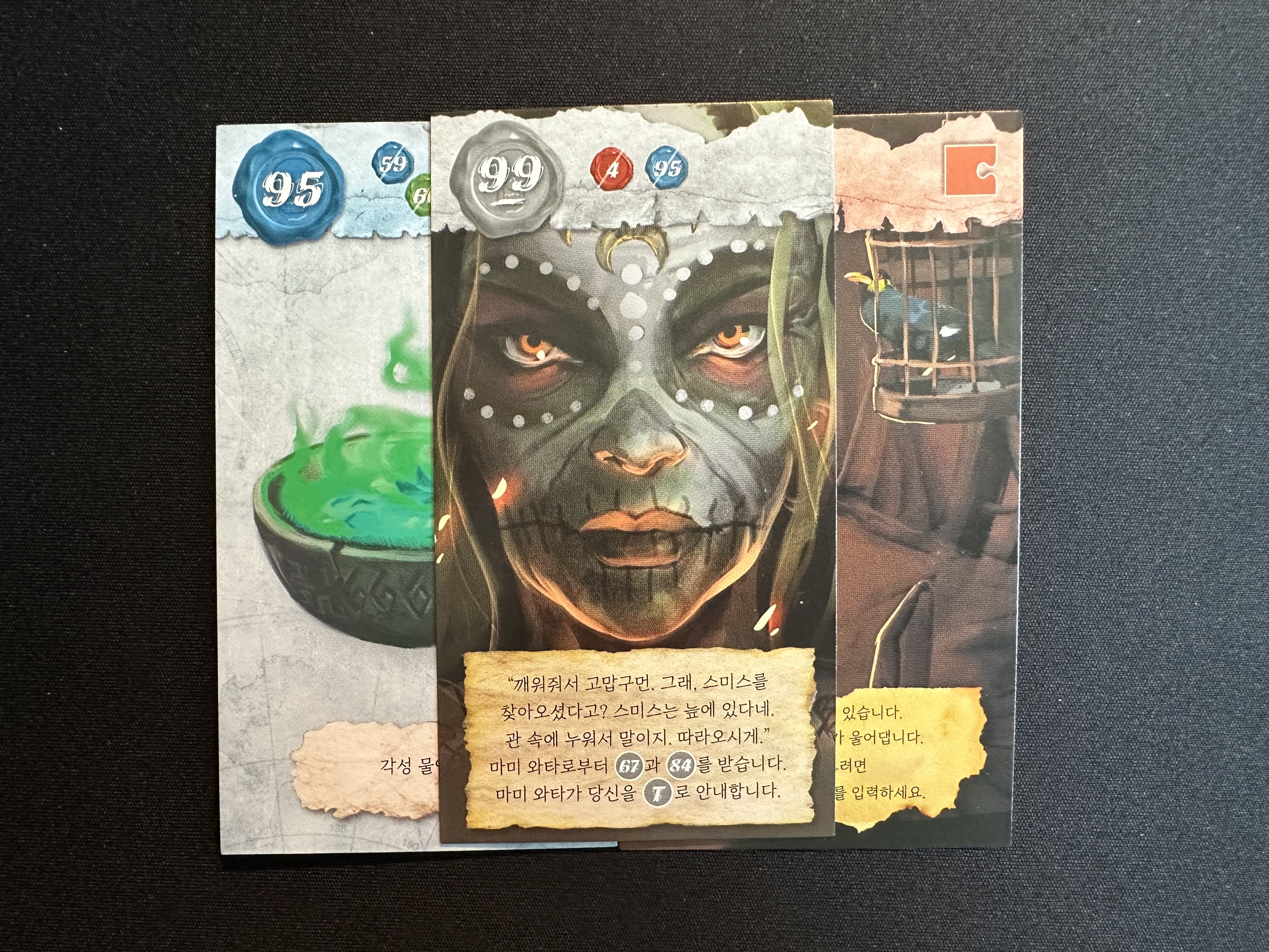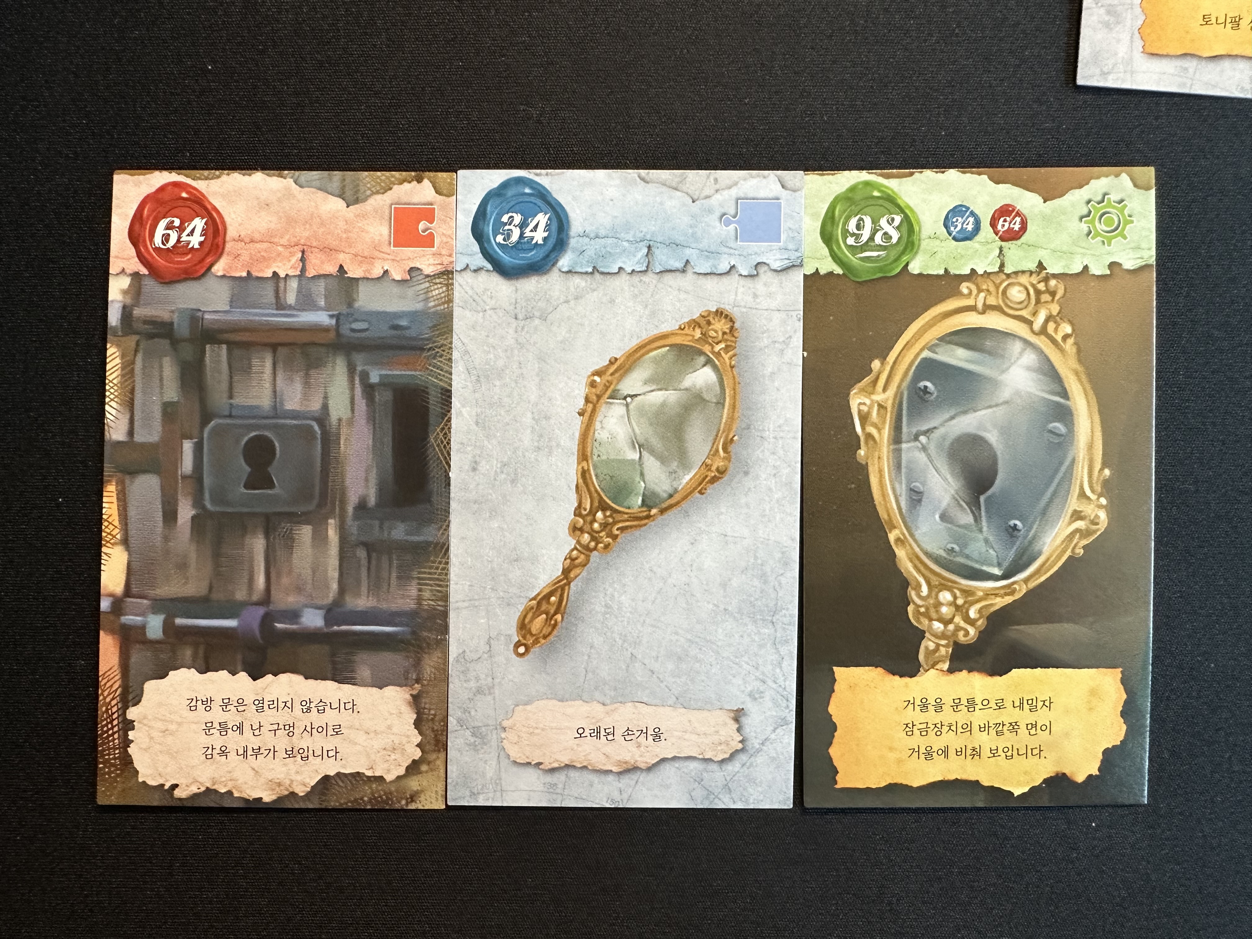 98번 카드의 경우에는 기계장치를 조작해야 하는 카드로 이번 시나리오에서는 기계장치가 꽤나 많이 나와서 이리저리 조합을 해야 한다.