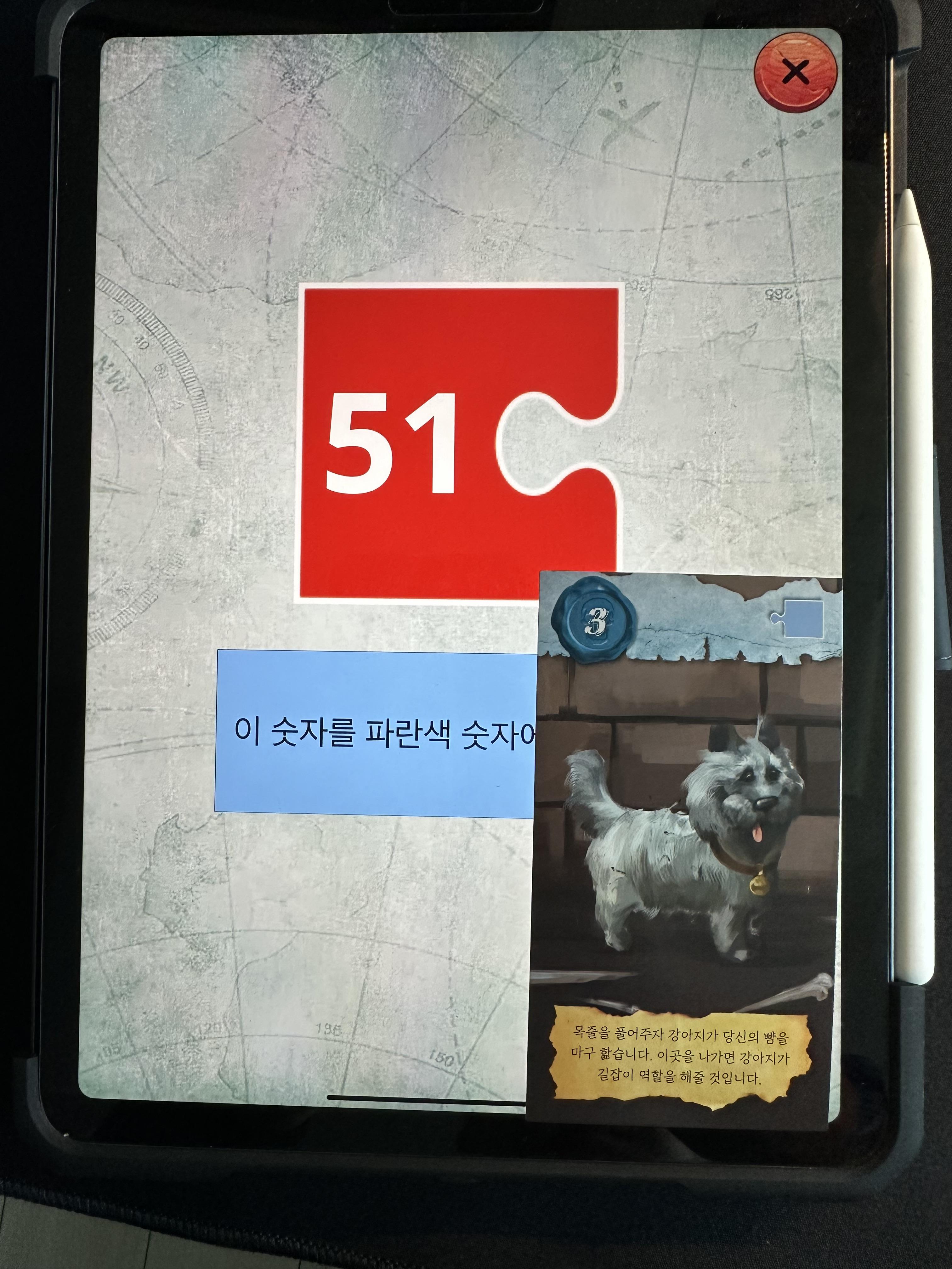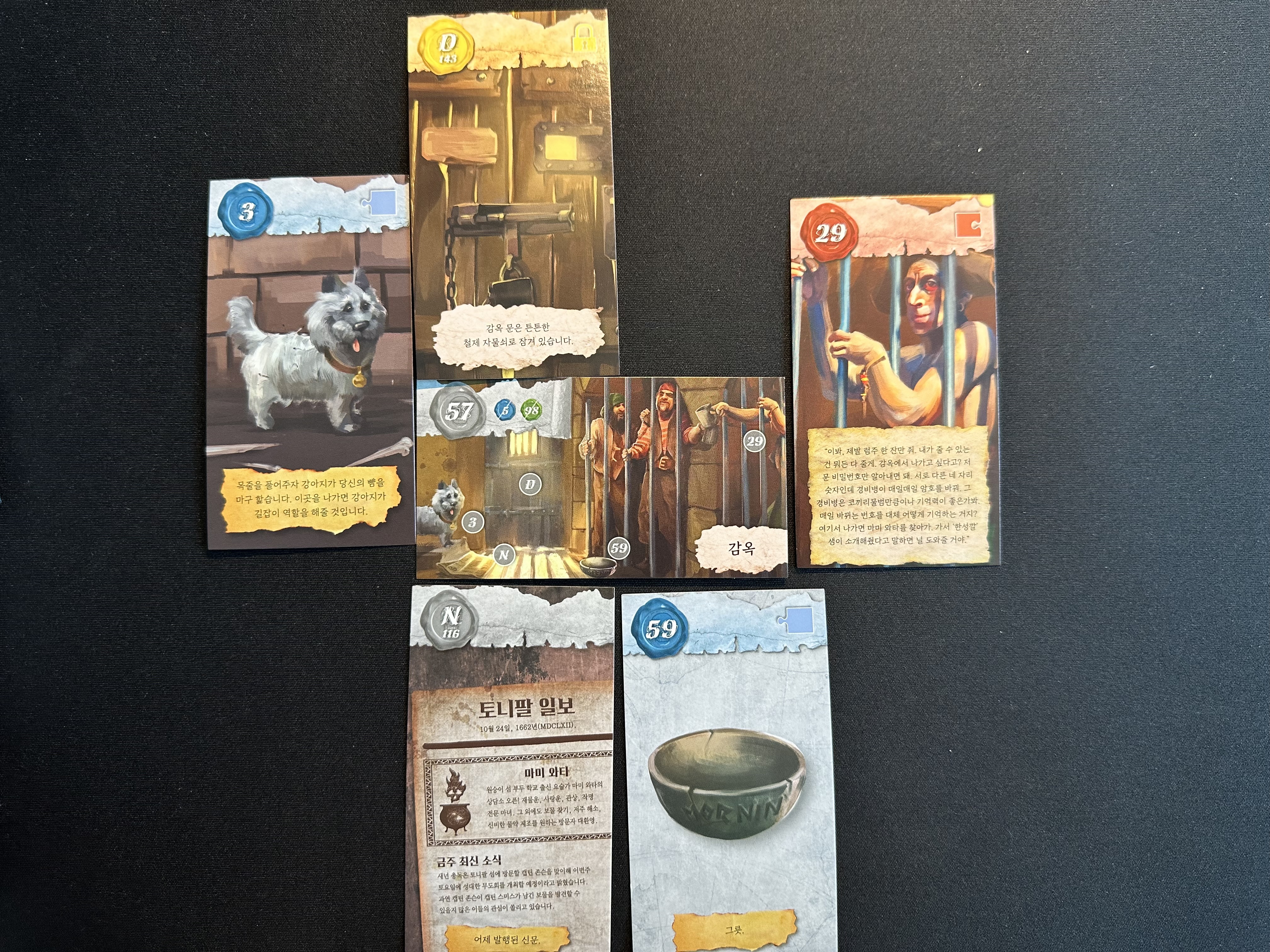 그러면 51번 빨간색 카드 조합이 나오고 길잡이 강아지 5번을 더해서 56번 카드를 꺼내면 된다.