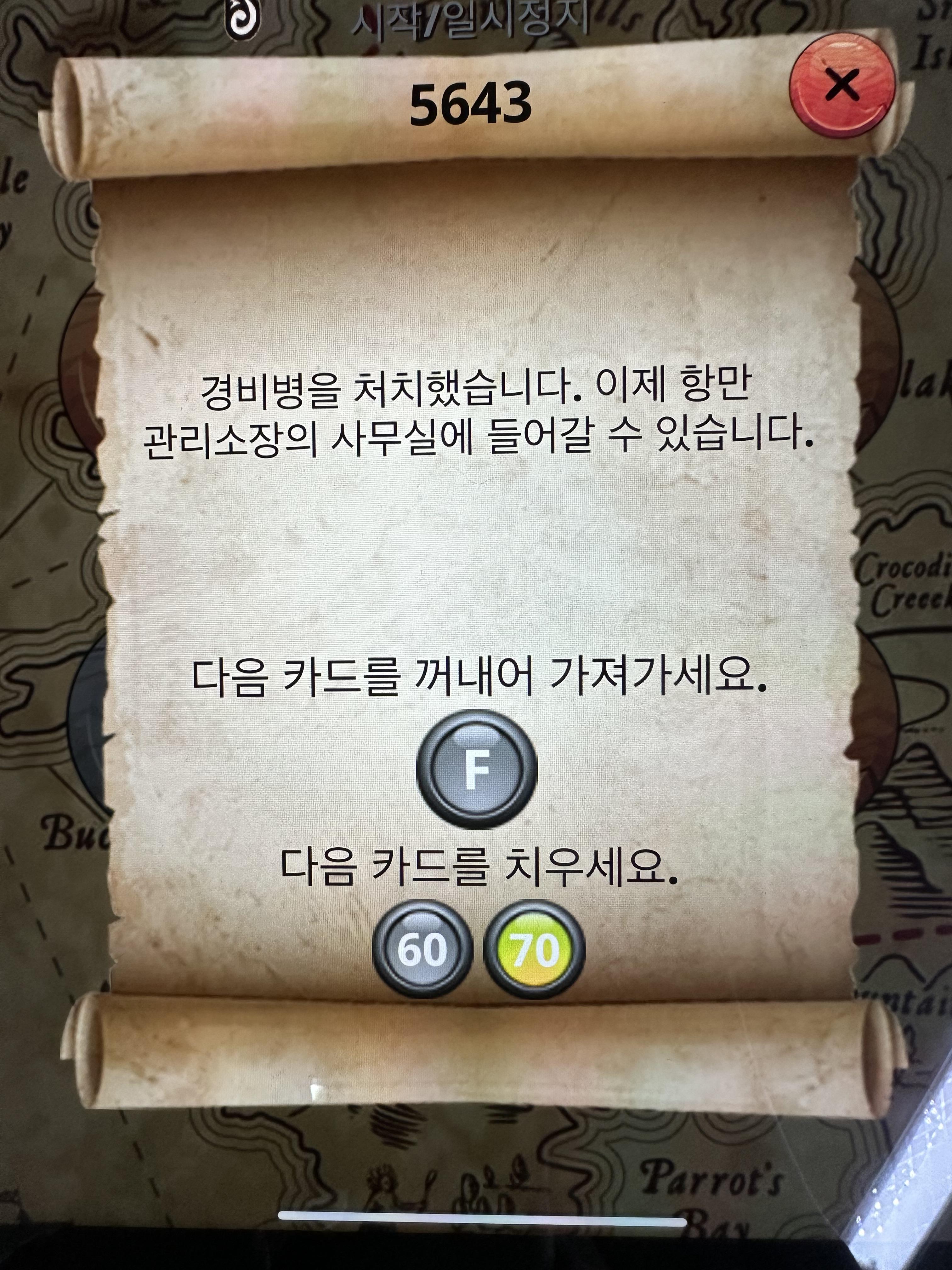 그리고 아까 어부의 집에서 찾은 조합법을 보고 경비병의 움직임과 대조해 숫자를 대입하면 된다. 5643의 순서대로
