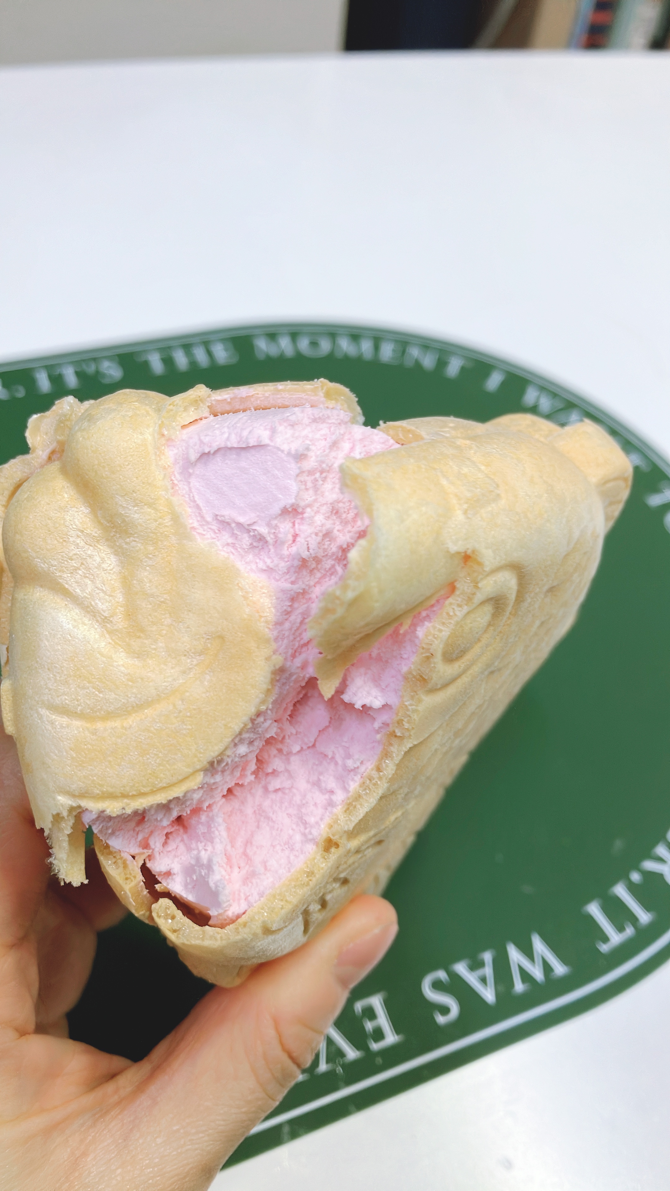 맛 자체는 그냥 딸기 아이스크림이다. 잼에 더 특이한 맛이 있는 것도 아니고 그저 약간 덜 딸기향이 느껴지는 딸기 잼이다. 예전에 슈크림 붕어사만코가 나왔을 때도 느낀 거지만... 붕어싸만코는 그저 기존의 팥이 들어간 제품이 가장 맛이 있는 것 같다.